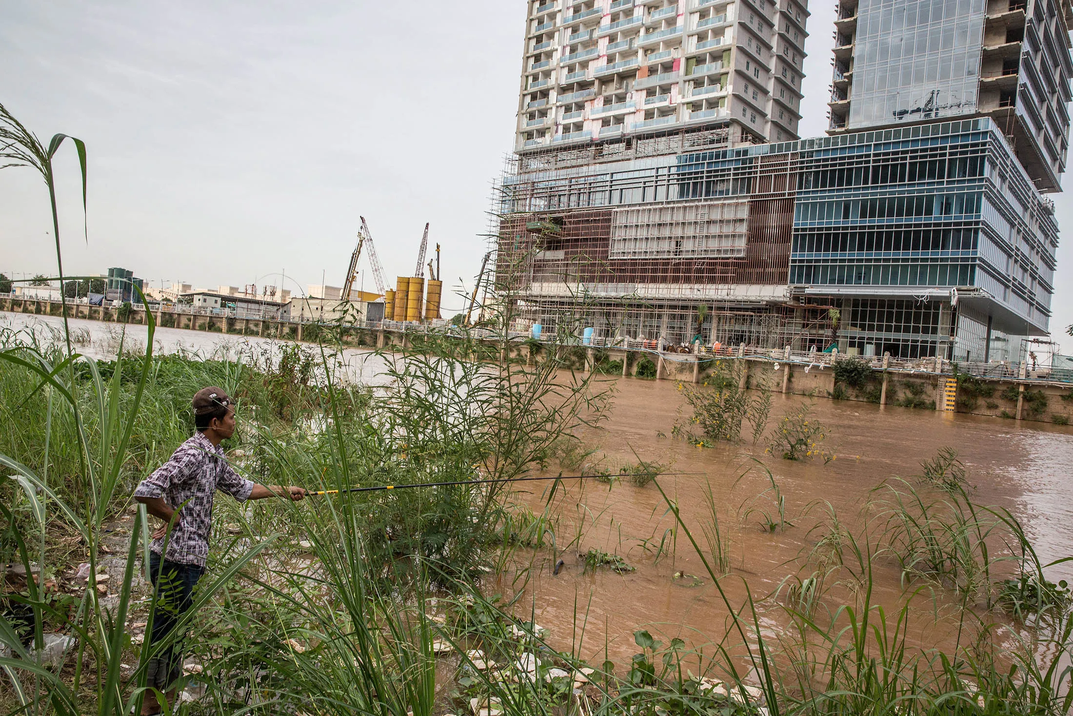 一名男子在一栋正在建设的建筑对面的河边钓鱼。摄影师:泰勒·韦德曼/彭博社金边是一个更极端的例子,展示了中国开发商和投机者在大陆房地产繁荣期间致富后,沿着习近平的新丝绸之路寻找愿意提供优质土地进行投资的政府,正在亚洲各地上演的房地产狂潮。
