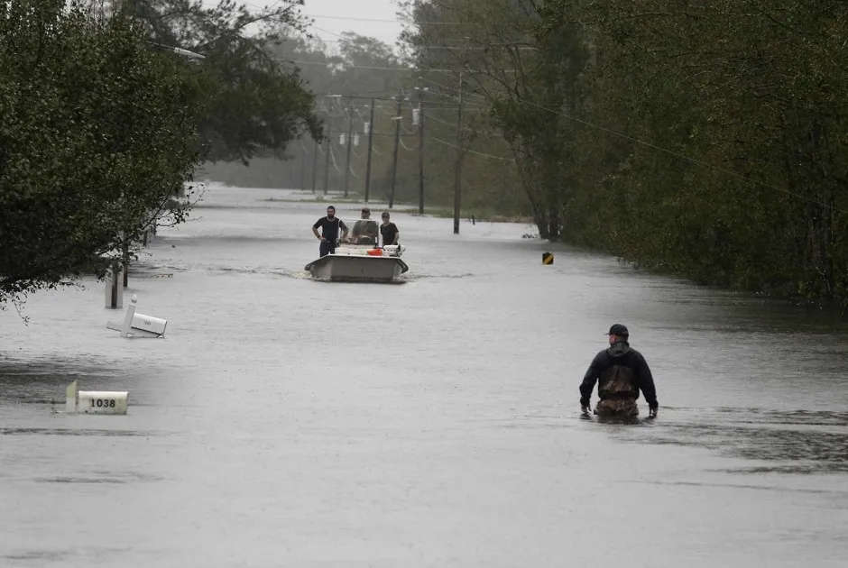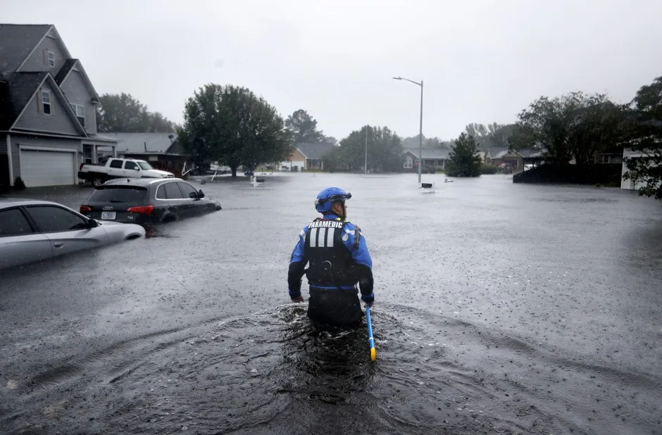 即使洪水没有以危险的速度流动,它们也隐藏着各种危险。在北托普萨尔海滩,北卡罗来纳州的一名消防员发现了 洪水中的毒蛇,而全州上涨的水位可能会带来煤灰和猪粪 漂浮在社区中。