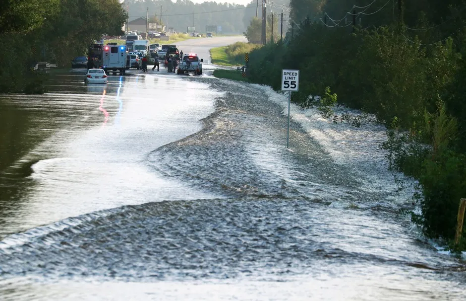 州际公路95号在许多地方也完全无法通行,因为附近的河流已溢出河岸,吞没了公路的部分。