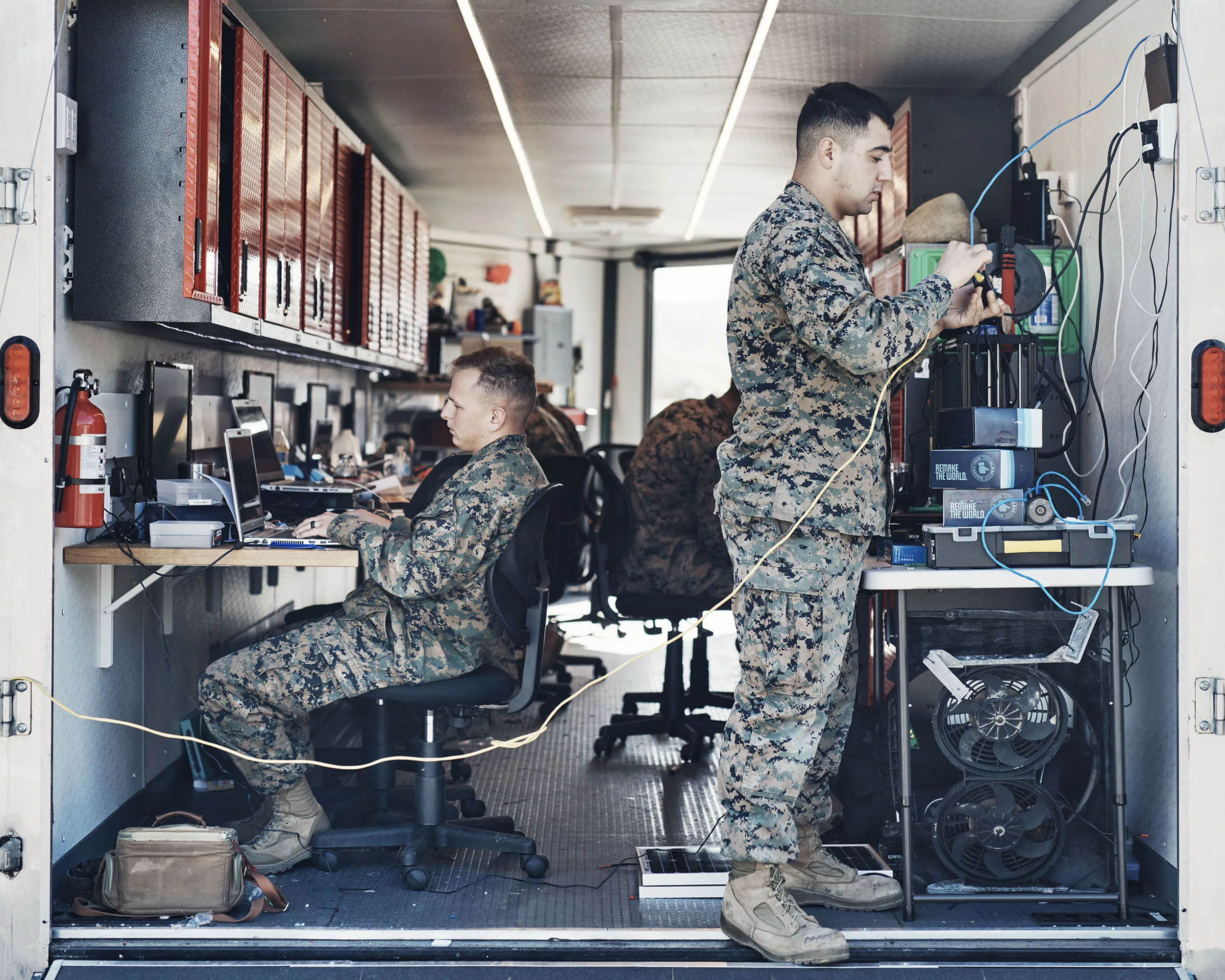 加利福尼亚的彭德尔顿营地的这班学生,来自第1海军后勤集团的各个单位,都是技术型人才。这些人是卡车机械师、无线电修理工和地面电子技术员。你可以想象,快速设计和打印迫击炮管螺栓或悍马车门把手的能力对他们来说是多么有用,因为替代方案是等待供应链中的替换零件。但之前的团队来自步兵、战斗摄影,甚至是声名显赫的海军突击队特种作战部队。哈尔西说,这一直是个想法。“突击者”,前线战士,需要的技能和修理他们装备的人一样多。“创新发生在紧迫性和必要性的交汇处,”哈尔西说。“海军陆战队基本上就生活在这个交汇点上。”