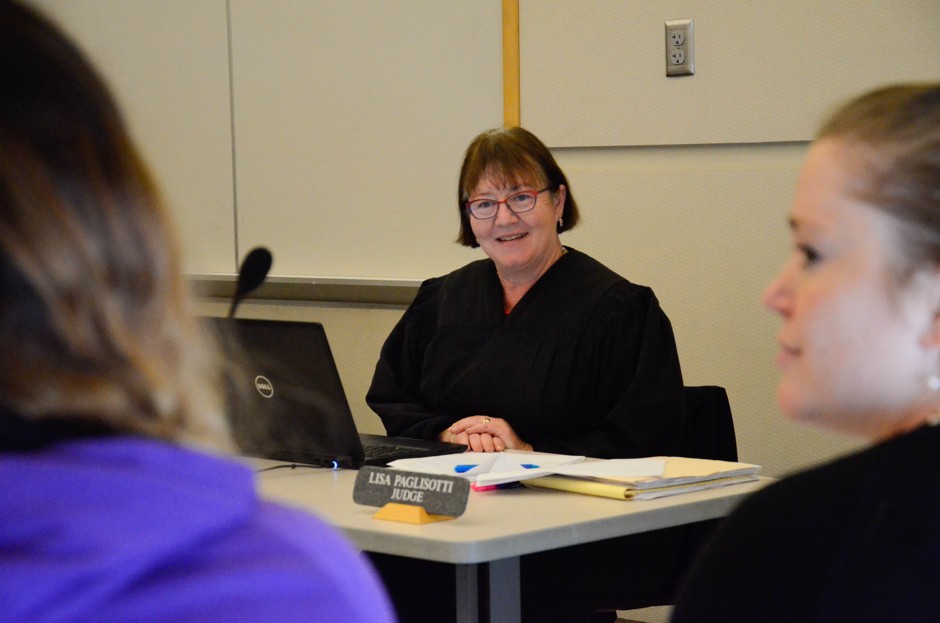法官丽莎·帕格利索蒂在华盛顿雷德蒙德的公共图书馆主持金县社区法庭。哈莉·戈尔登上周三,在检察官、辩护律师和一群观众面前,法官丽莎·帕格利索蒂迎接了布列塔尼·米斯特尔斯基,这位24岁的年轻人因轻罪出现在她的法庭上。