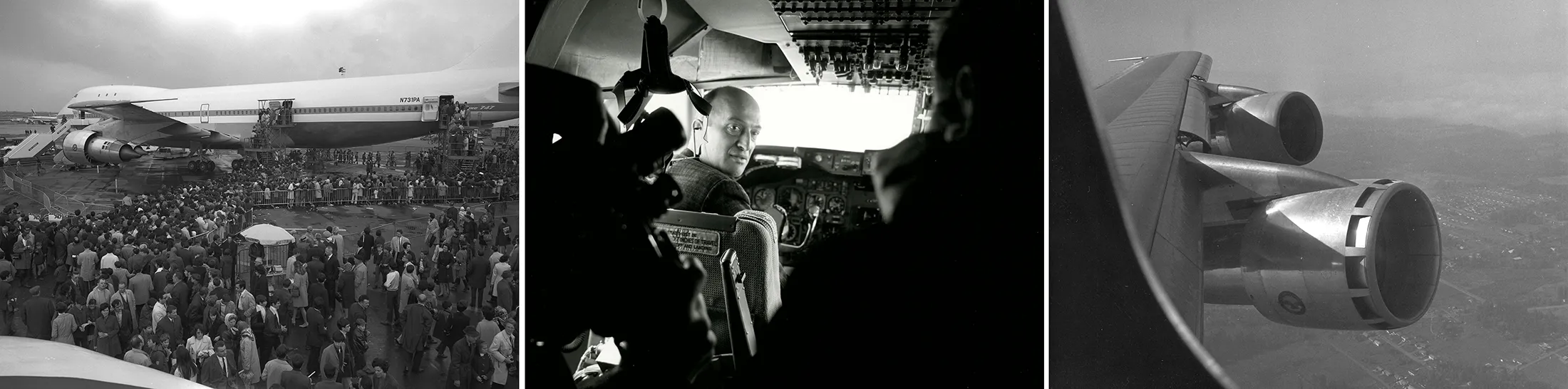 首架试飞飞机RA001的尺寸是当时波音下一款最大商用喷气机的两倍多。喷气机的飞行员坐在离地面三层楼高的驾驶舱里。它从图纸上诞生,仅用了两年半的时间,由波音的火爆脾气首席工程师乔·萨特尔领导的团队完成。该设计违背了首位客户泛美航空的意愿,成本几乎让波音破产。