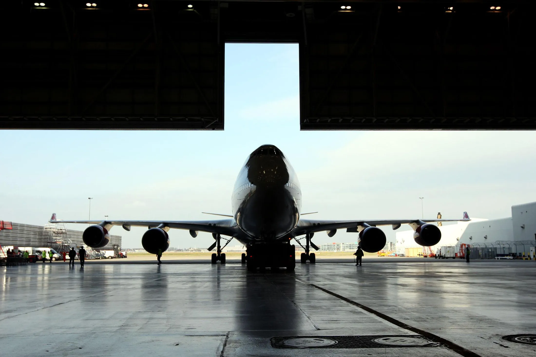 维珍大西洋的747从希思罗机场的维珍机库推出,前往阿姆斯特丹,进行航空公司首次生物燃料航班。摄影师:史蒂夫·帕森斯/PA图片通过盖蒂图片社