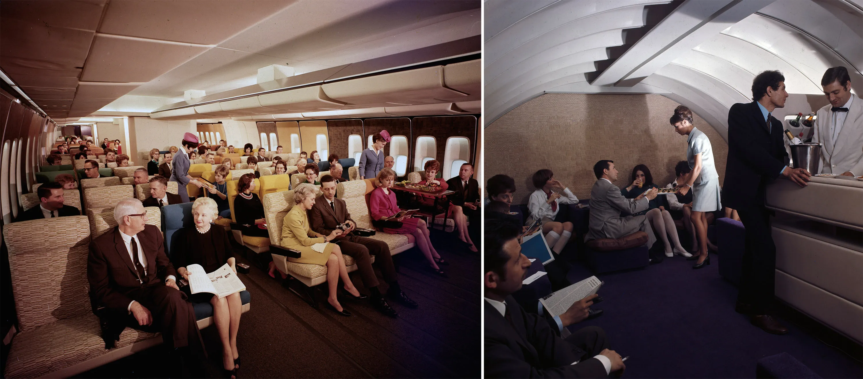 左上和右上,1969年巴黎航展上的747机舱模型来源:Corbis via Getty Images
