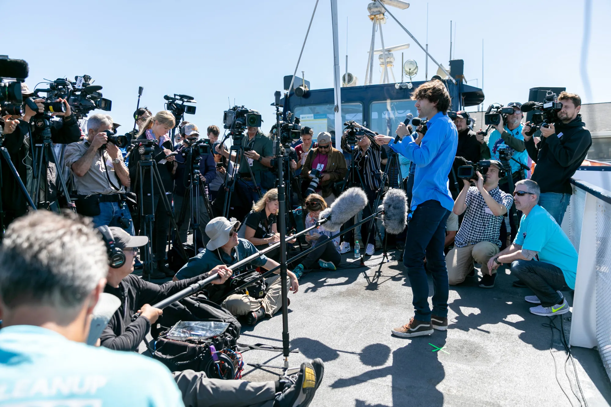 博扬·斯拉特,海洋清理组织的创始人兼首席执行官,2018年9月8日系统001的发布会上。摄影师:皮埃尔·奥吉耶/海洋清理组织系统001是斯拉特想法的一个微型版本。基本上,他想利用一支由40个漂浮浮筒组成的舰队拖拽海洋,悬挂3000英尺长的帆布状幕布,围绕垃圾带,借助风和洋流推动,并在过程中捞起塑料。每隔几个月,一艘船将来收集垃圾并将其带回岸上。一部分将被回收,其余将被焚烧作为燃料。希望这能帮助该项目自负盈亏并扩大规模。该计划的简单性和大胆性使斯拉特赢得了广泛的关注,包括莱昂纳多·迪卡普里奥、马克·鲁法洛以及280万人观看了他的TEDx演讲在YouTube上。他表示,这也帮助他的公司吸引了超过80名优秀员工的团队。