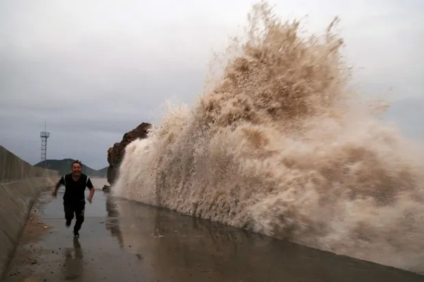 台风杰比引发的高浪在日本西部的一个渔港被看到。路透社在九月中旬的台风山竹期间,香港和中国南部沿海其他城市捕捉到的场景几乎是末日般的:树木被连根拔起,塔楼摇摆不定,窗户破碎,海浪冲击建筑,公路变成河流。山竹的最高 风速达到每小时180英里——是今年地球上最强的风暴。在菲律宾,这场风暴造成至少70人遇难。