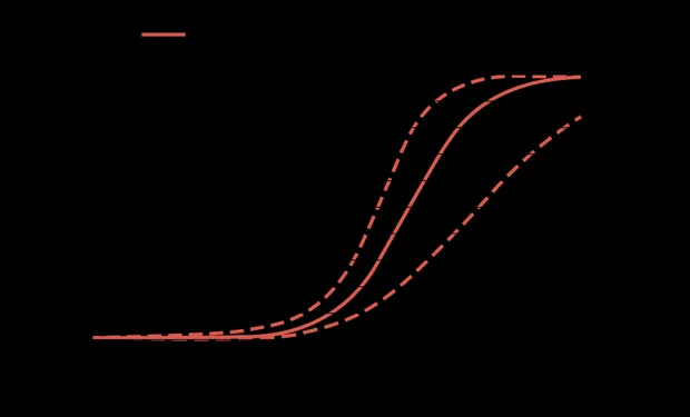 根据S.J. Ashton收集的行人伤亡数据,这张图表显示了车辆对行人的风险在25英里每小时时急剧上升。(虚线是置信区间。)D.C. Richards交通研究实验室20到40英里每小时的阈值区域基本上是所有事情发生的地方——这是瘀伤、骨折和死亡之间的区别。而20到40大致是我们在最佳市中心街道上发现汽车行驶的速度范围。因此,保持汽车在这个范围的低端,必须是城市街道设计的核心目标。