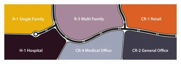 我们这些规划者现在知道这是错误的。分区城市不再在规划学校教授。城市规划、城市设计和房地产行业的领导者们一致认为,单一用途分区是经济、环境和社会灾难的配方。然而,在全国范围内,老式的分区地图仍然存在,坐落在一块又一块未开发的土地上,正好在进步的道路上。显然,分区城市与可步行城市正好相反。如果没有任何东西靠近任何不同的东西,而唯一的连接是一条宽阔的道路,那么人口就会自动被迫开车。