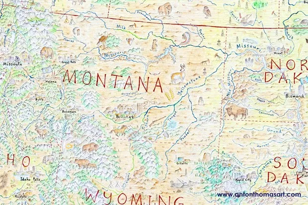 安东·托马斯对北美的迷恋无止境。实际上,去掉这一点,它知道这些界限:四年,4000小时,三次跨越太平洋的旅行,以及47乘59英寸的纸,上面覆盖着他所说的捕捉了他“地理心”的费力手绘地图。