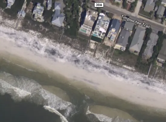 还有其他事情是NOAA的影像揭示的:持续的海滩建设。尽管气候科学家预测海平面上升将侵蚀潘汉德尔的海滩,更多的暴风雨将袭击它们,但人们仍然在水边建造房屋,毫不畏惧。
