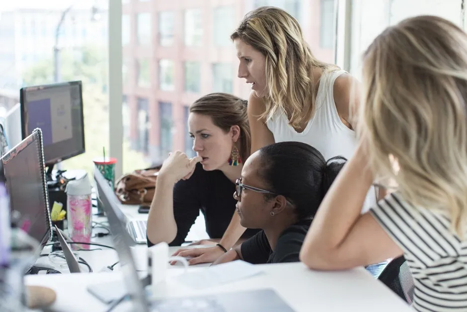 左起:梅丽莎·安德森、泰勒·费舍尔、玛雅·库克和希瑟·拉塞尔在北卡罗来纳州达勒姆的美国地下三楼办公室进行软件集成工作。亚历克斯·博尔纳历史表明,达勒姆应该是这样一个中心的理想地点:这座城市有着悠久的非裔美国人创业传统。1911年,布克·T·华盛顿访问达勒姆,见到了“繁荣的医生、律师和牧师”,他们住在“有电灯、蒸汽供暖、浴室和所有现代设备”的房子里,他写道。“这是寻找黑人繁荣和南方两个种族之间最大友好感情的城市。”