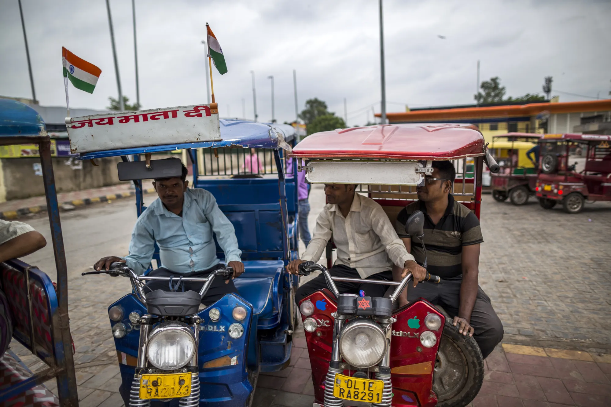 电动三轮车司机在新德里的地铁站等待乘客。摄影师:Prashanth Vishwanathan印度的电动车革命正在蓬勃发展,而这与汽车无关。
