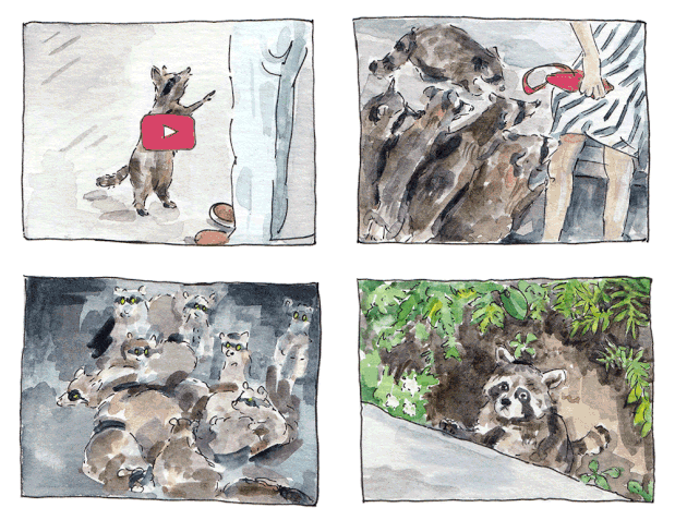 近年来,露台上一次可能出现40到50只浣熊。在YouTube上搜索,你会看到浣熊群围绕游客的视频,甚至从人们手中抢走物品。