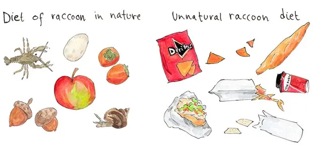 浣熊也可能遭受与人类相同的饮食和肥胖相关的健康问题,包括糖尿病和蛀牙。