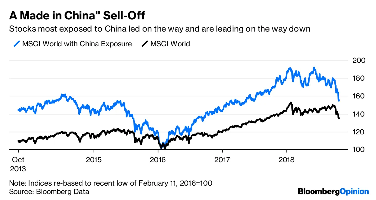 **中国制造:**周一下午,美国股市再次出现波动。我认为,这主要是由于强制卖家,因为对冲基金等投机者逐渐适应了必须以更少杠杆操作的现实。但值得注意的是,这显然有一个中国因素。自2016年以来,越是与中国相关的公司,表现越好。但在最近几周,这一切都发生了变化,那些公司的表现变得更差。