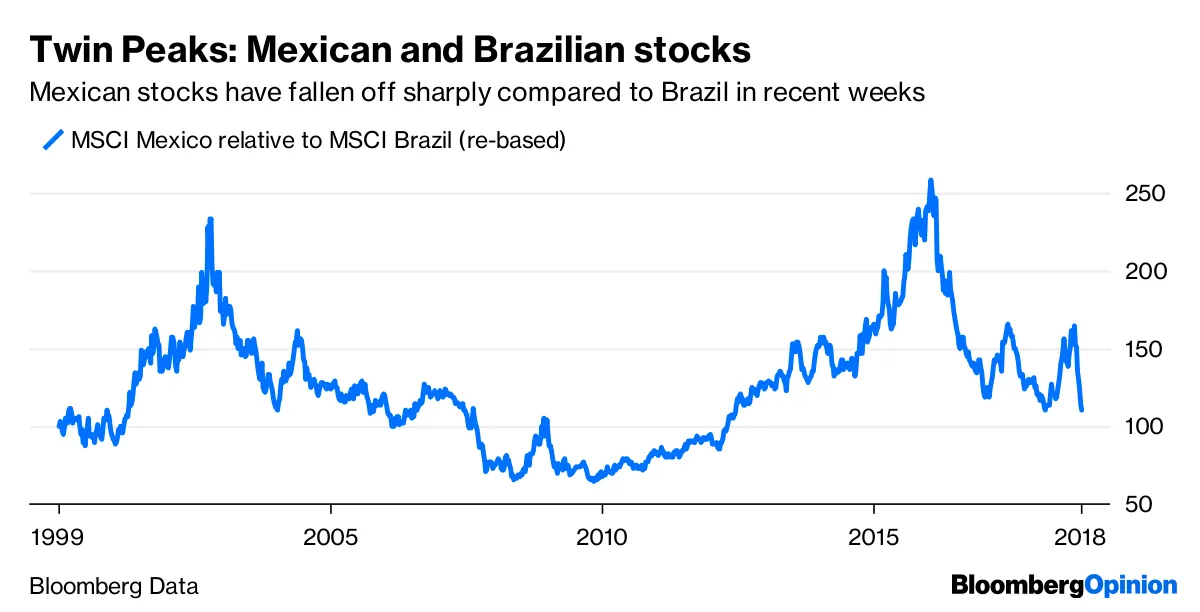 政治风险在巴西和墨西哥仍然很高,即使我们现在知道了未来几年他们的总统身份。市场目前的判断可能是正确的。但概率的平衡指向墨西哥从这里复苏的机会大于巴西。