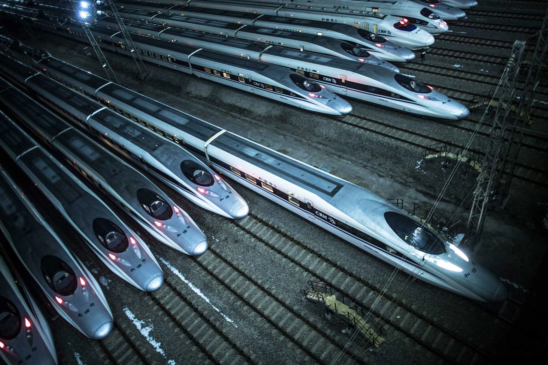 中国湖北省武汉的高铁。摄影师:新华社/极光在中国2025计划中,有三个因素尤为突出: