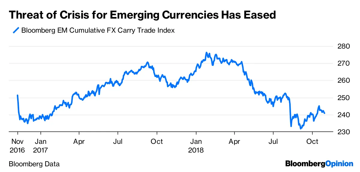 彭博数据但货币市场至少给了一些乐观的理由。最新一轮美元强势并没有转化为新兴市场的再次疲软。这降低了新兴世界真正危机的风险,也减轻了美联储在利率上采取宽松政策的压力。