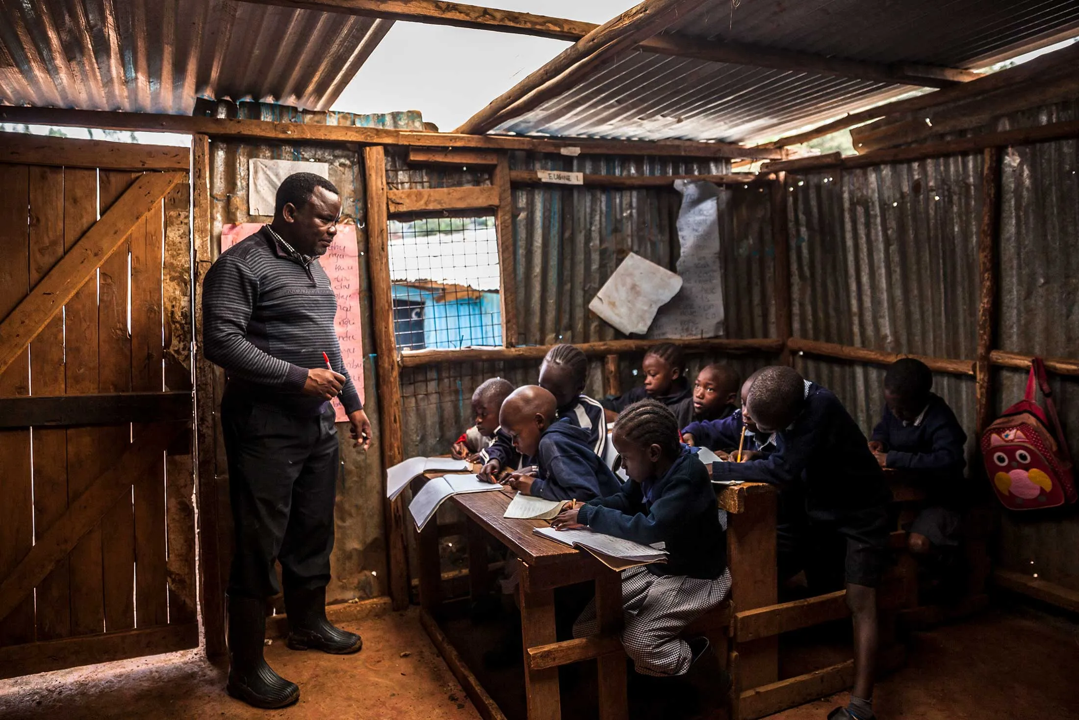 在西法儿童中心,铁皮搭建的简易教室为约300名学生提供学习空间,围绕着一片尘土飞扬、坚硬的土地,这里既是游乐场也是会议空间。学校之外是加蒂纳,这是肯尼亚首都内罗毕最贫困的社区之一。校长弗朗西斯·万贾拉正站在一个闲置的教室里看手机;他刚刚学会如何交易基于区块链的数字代币。