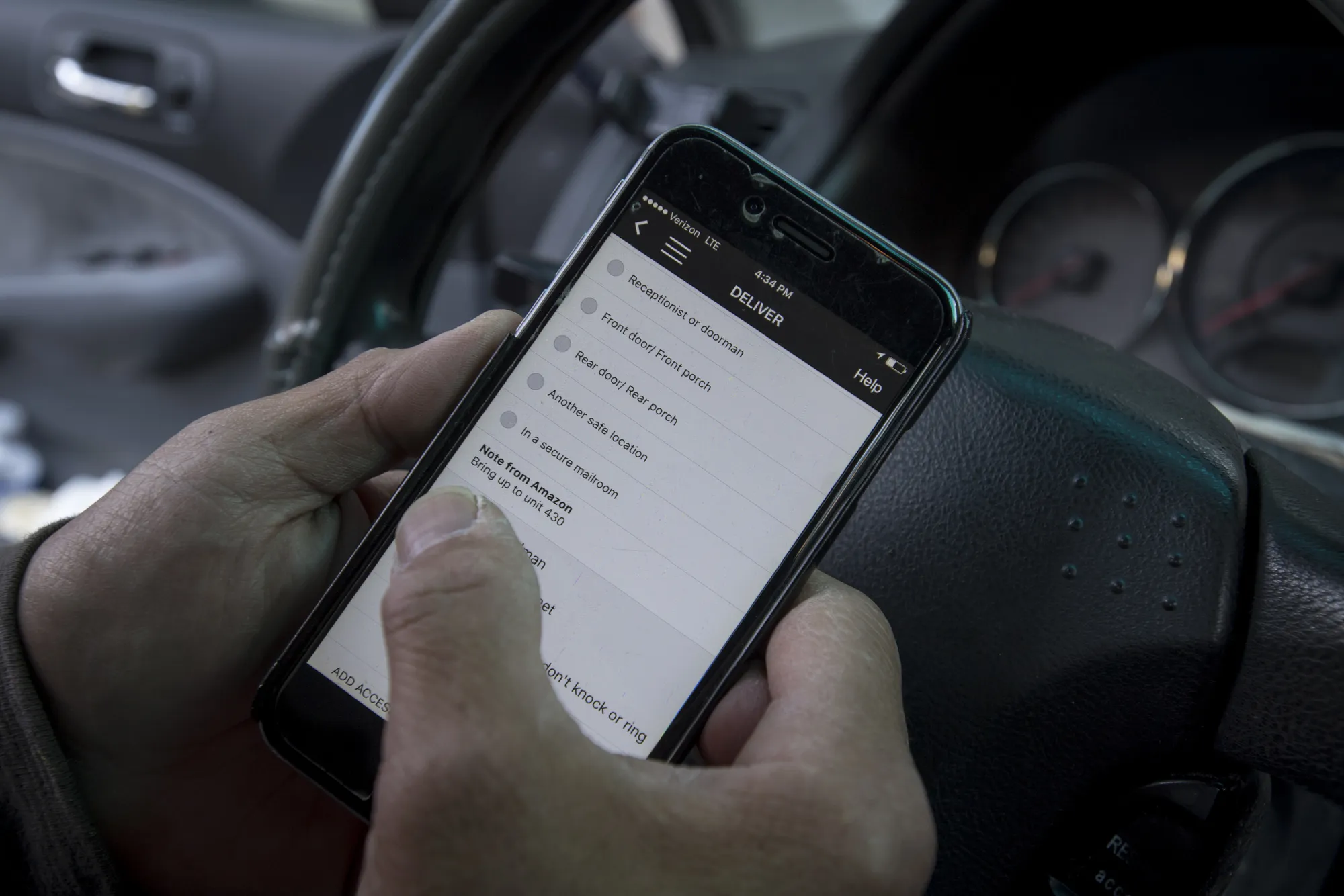 谢尔温·卡伦根,一名为亚马逊Flex工作的司机,在10月30日于旧金山查看他的送货笔记。摄影师:大卫·保罗·莫里斯/彭博社许多Flex工人表示,他们没有更好的选择。他们愿意冒险以避免被踢出应用程序。一些人说,他们为了按时送达而非法停车或闯红灯。习惯迟到的司机会被从劳动力池中移除。司机们说,亚马逊可能还会对那些反复未能退回未送达包裹的人采取行动。两名工人表示,他们被要求每四到五个班次将包裹退回仓库。