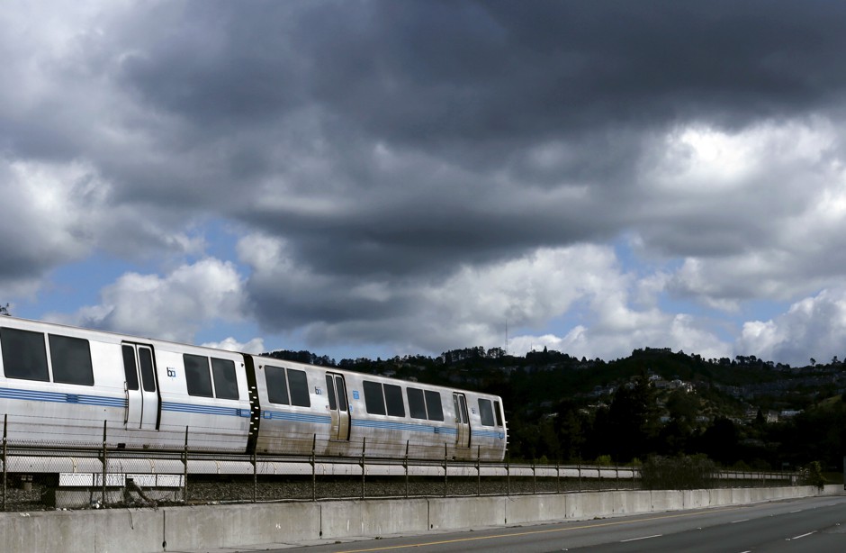 湾区快速交通列车在奥克兰的轨道上行驶。如果第6号提案通过,汽油税收入减少,加州的交通机构可能被迫削减服务或改善计划。罗伯特·加尔布雷斯/路透社在2017年春季,加州州长杰里·布朗和州内的民主党立法者竭尽全力做了一件对政治家来说几乎是最不受欢迎的事情:他们将汽油税提高了每加仑12美分。