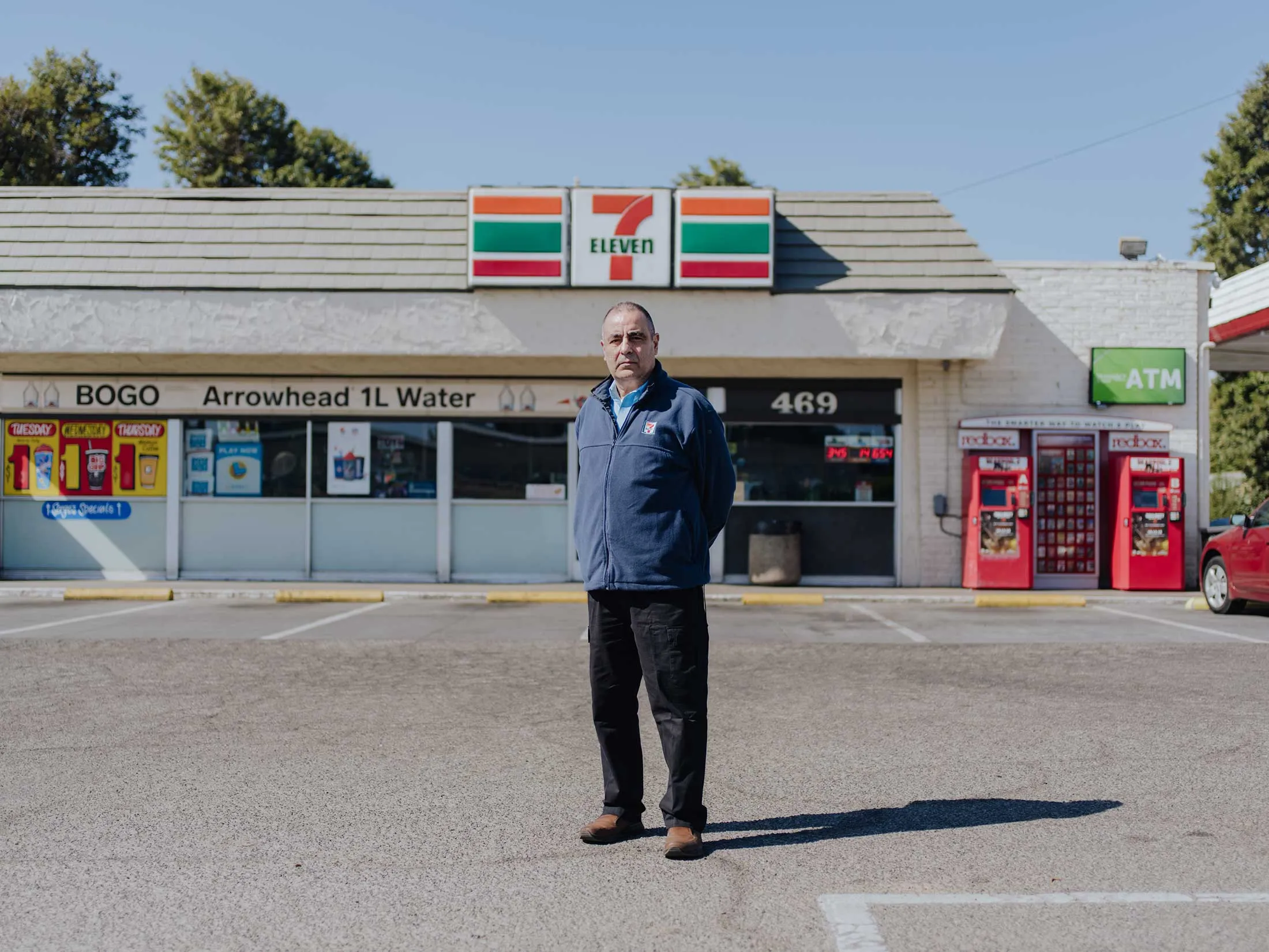 塞尔日·海塔扬在加利福尼亚州弗雷斯诺的7-Eleven商店。摄影师:乔伊斯·金为《彭博商业周刊》拍摄在7-Eleven与其特许经营者之间的激烈、漫长的战争中,一切都是公平的。自德平托,这位西点军校毕业的退伍军人掌权以来,紧张局势逐年加剧,他开始对特许经营者提出更多要求——更多库存、更多资金、在大大小小的事务上更多遵守。一些特许经营者通过组织、投诉,有时甚至提起诉讼来回应。