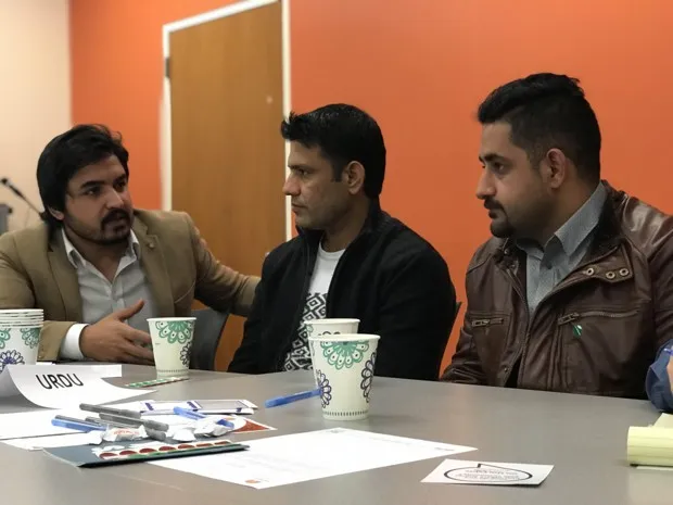 食物可能是一个次要的焦点,但它仍然是这个活动的重要组成部分,因为它为人们提供了共同点。在国籍服务中心,一个欢迎移民和难民的组织,玉米饼和鹰嘴豆泥将来自哥伦比亚的新移民与来自苏丹、叙利亚和巴基斯坦的难民聚集在一起。大约十个人用西班牙语、阿拉伯语和乌尔都语的混合语言,通过翻译讨论作为新来者在城市中的生活。从找工作和学习英语到感到安全和为孩子们寻找游玩场所,常见主题在这个群体的语言障碍中回响。