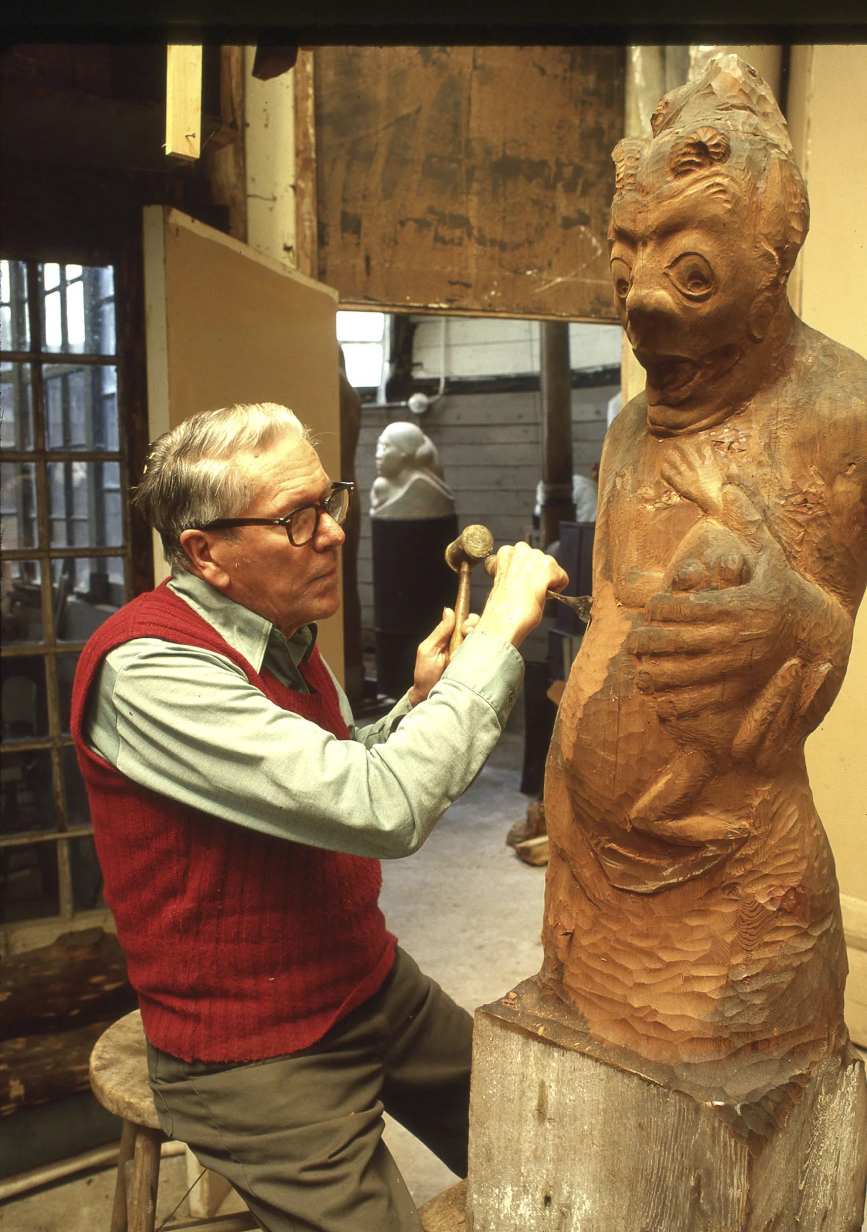 在1950年代初期的关注热潮之后,韦格斯回到了隐居的生活。他大部分时间都花在修缮房子或雕刻上。他偶尔会在展会或展览上展示一件雕塑,让人们欣赏,但他从不留在现场听取评论或尝试出售作品。“来这里的人如果喜欢一件作品,可能会买,也可能不会,”他告诉一位记者。“去他的。我创作艺术作品是出于对它的热爱。”