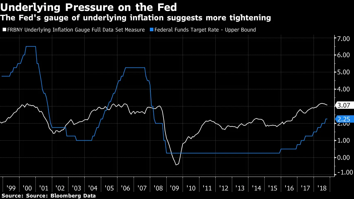 如果对经济增长有很大的信心,通胀预期就不会像现在这样下降。而科技公司发布的第三季度业绩,加上零售商最新一批令人失望的业绩,令投资者非常担忧。与此同时,对宽松的美联储救助几乎没有希望。根据纽约联储的基础通胀指标,它仍然在控制之下,但超过3%。最近的历史表明,在中央银行对通胀压力有信心之前,利率将会上升到当前水平之上: