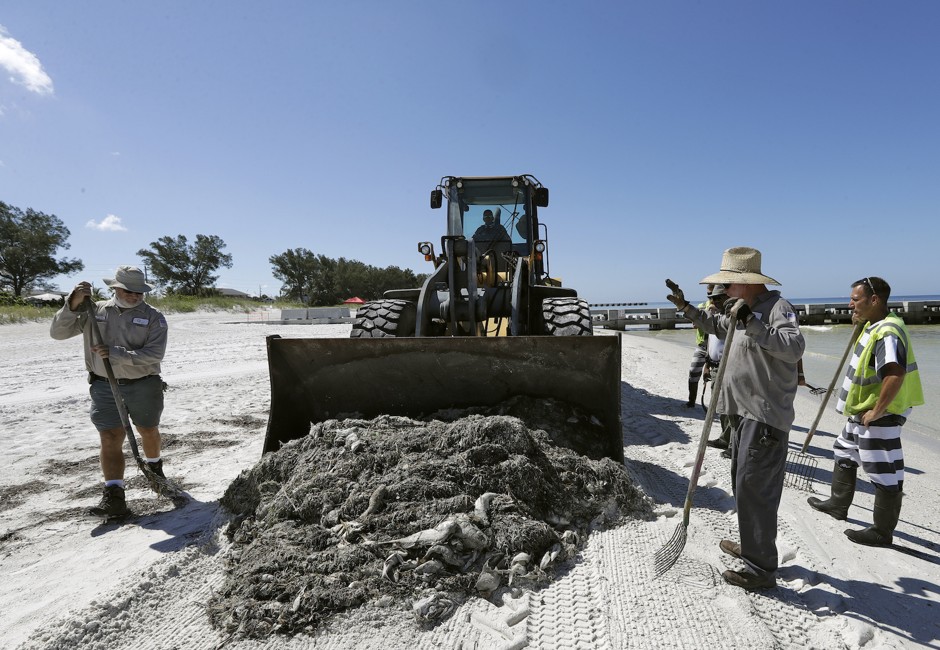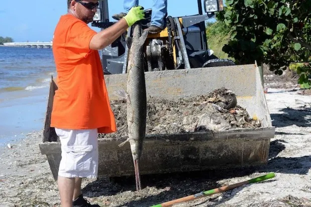 但随后有毒藻类的繁殖情况变得更糟。该部门雇用了额外的临时工,当他们仍然无法跟上县内50英里墨西哥湾海岸线(包括迈尔斯堡和圣ibel海滩)上的腐臭废物时,李县雇佣了一家私人承包商来帮助将鱼抬入垃圾箱和县焚烧炉。
