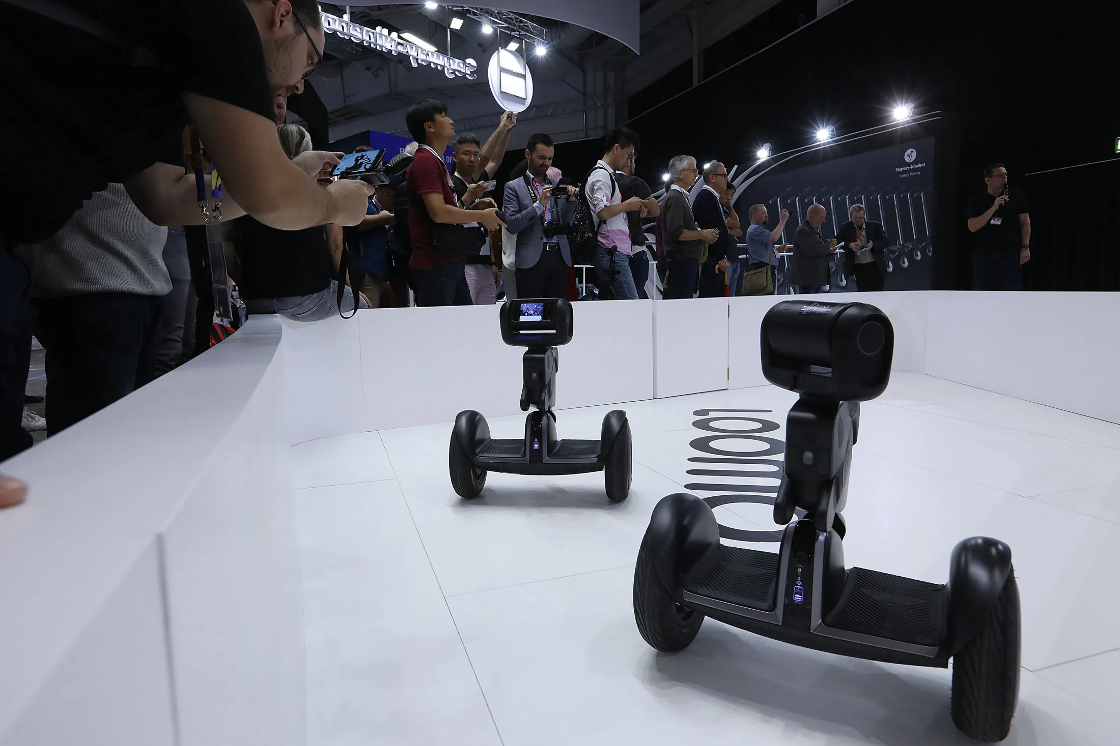 员工在柏林的IFA消费电子展上展示了Ninebot制造的Drift W1电动滑板鞋。摄影师:Krisztian Bocsi/BloombergNinebot被指控推出与竞争对手的设计有明显相似之处。在收购Segway之前,Gao花了多年时间与这家美国公司对抗。Segway多次起诉Ninebot和其他中国制造商,声称他们抄袭了设计。在某个时刻,Segway试图阻止Ninebot在美国销售。然后,在2015年4月,Gao召开了一场新闻发布会,表面上是为了讨论新投资者。在结束时,Gao身后闪现出一条中文消息:“Ninebot收购Segway。”