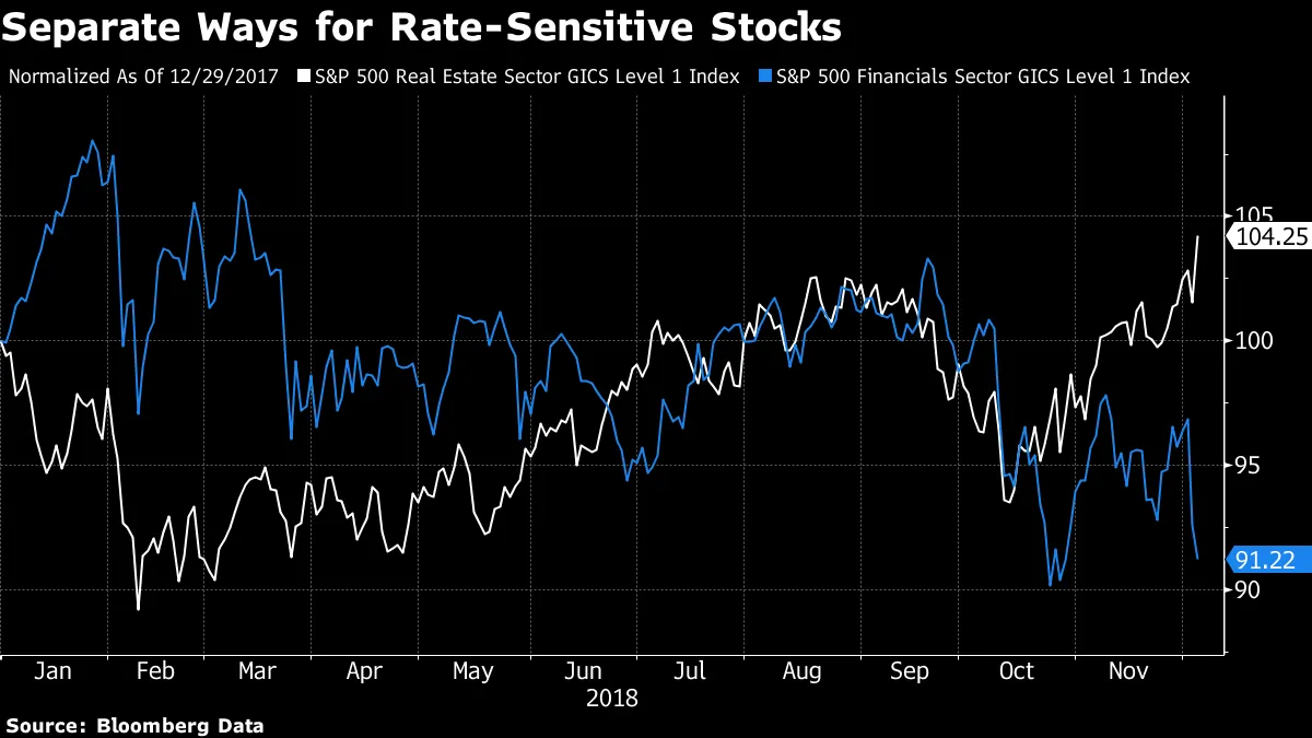 一如既往,金钱会说话。当波动性飙升时,一切都在大量中计数。美国股市的复苏在欧洲收盘后不久开始显现,到交易结束时,科技股(无疑最有可能受到科技战争第一击影响)当天上涨。能源股仍然较低,而当天最明显的模式是利率敏感性:房地产股票受益于较低的利率,按标准普尔500房地产行业指数计算上涨了2.7%,而金融股(受益于较高的利率)下跌了1.4%。