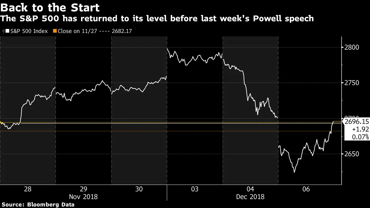 在最糟糕的情况下,纽约时间中午左右,美国股市已经抹去了在美联储主席杰罗姆·鲍威尔上周暗示中央银行接近结束紧缩货币政策的行动后所获得的所有涨幅。上周末美国总统唐纳德·特朗普与中国国家主席习近平在阿根廷的看似积极的会晤所带来的初步涨幅早已被抛在了脑后。