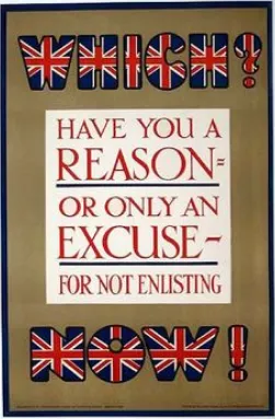 在第一次世界大战期间,英国军队招募人员提出了一个重要的问题:你是有理由还是仅仅是借口不参军?可以推测,不想在一场可怕且毫无意义的战争中死去并不算一个好的理由。