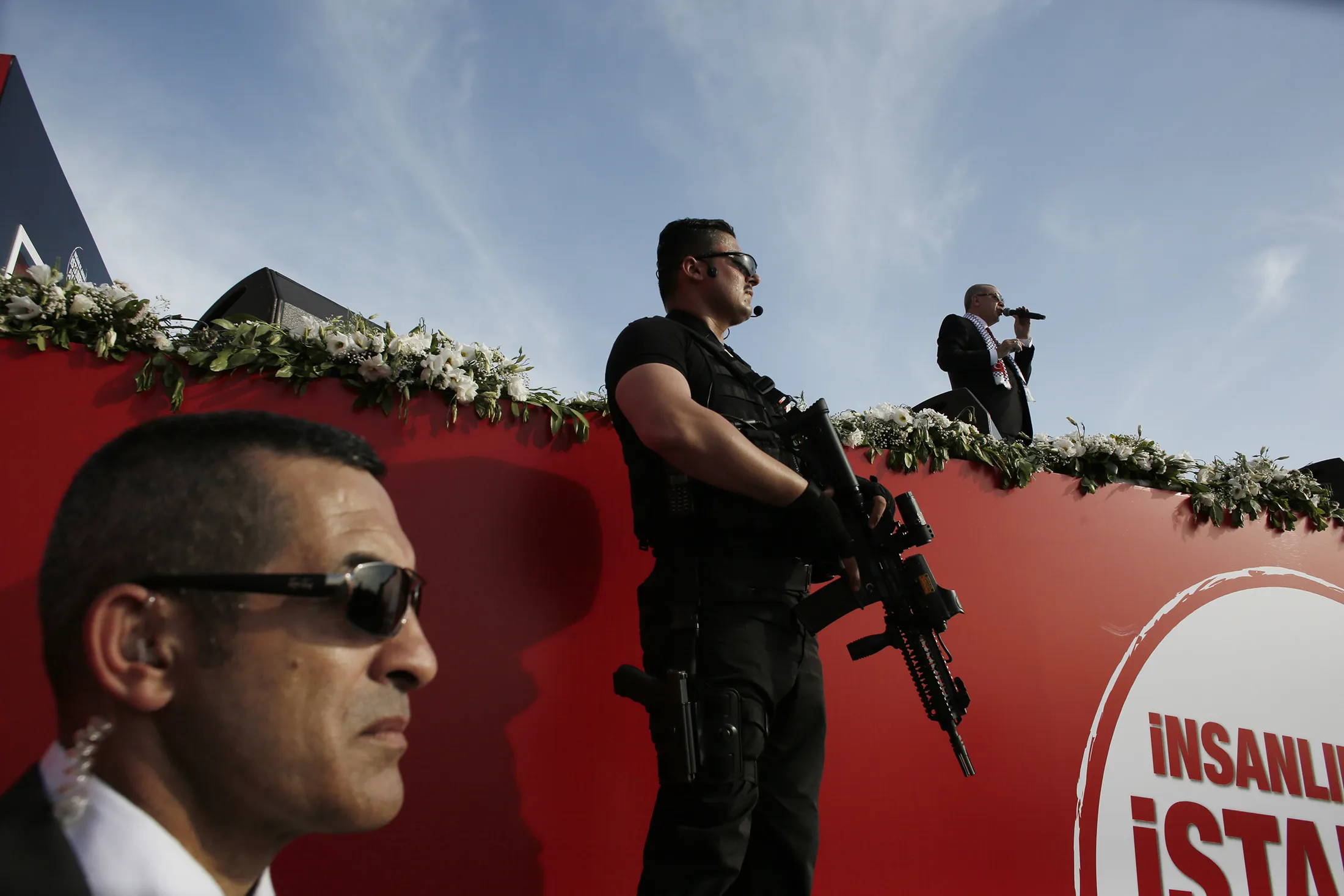 雷杰普·塔伊普·埃尔多安,右,5月18日在伊斯坦布尔的集会上发言。摄影师:科斯塔斯·齐罗尼斯/彭博社* 投资者在因与美国牧师拘留相关的制裁、中央银行不愿收紧政策以及新兴市场的更广泛资金外流的三重打击下纷纷逃离。土耳其总统雷杰普·塔伊普·埃尔多安认为高利率会导致通货膨胀的观点也未能恢复投资者的信任。尽管中央银行最终通过提高借贷成本来支撑里拉,但它仍然留下了许多伤痕,货币正面临十多年来最糟糕的一年。