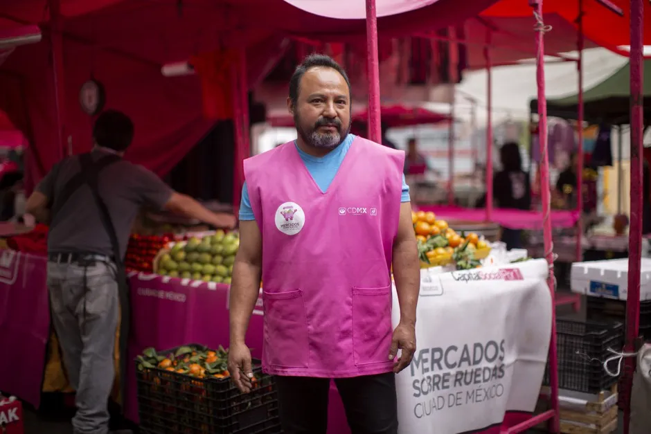 曼努埃尔·古铁雷斯,Ruta 6 Mercado Sobre Ruedas的领导者之一,站在多克托雷斯社区的摊位外。古斯塔沃·格拉夫这些较小的流动街头市场——例如Ruta 6——通常是在不同的许可制度和与各地方和州政府的协议下设立的。“在过去的十年里,开设新的tianguis变得越来越困难,因为邻里的投诉现在被政府更加重视,”48岁的古铁雷斯说,他是Ruta 6的代表。“这就是为什么大多数街头市场都相当古老。”