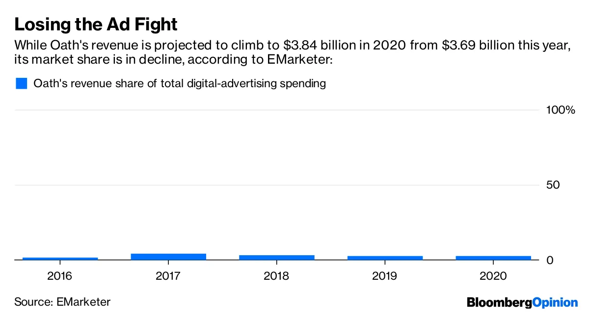 威瑞森通信公司的广告/媒体部门“Oath”,由AOL、雅虎和其他部分拼凑而成,应该被称为“哎哟”,塔拉·拉查佩尔写道。其糟糕的表现证明了威瑞森专注于其无线业务的决定是合理的,并且 引发了对Oath未来的质疑。