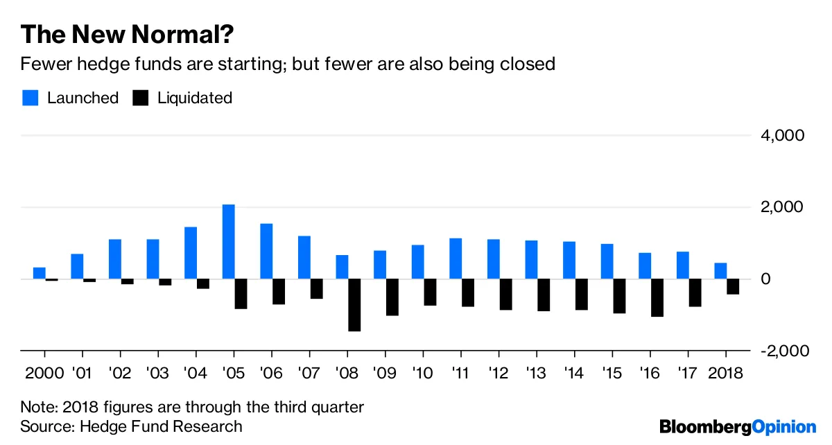 许多知名对冲基金可能正在关闭,包括被机器人搞垮的Philippe Jabre,Marcus Ashworth写道。但总体而言,对冲基金的死亡率正在下降,Mark Gilbert写道。