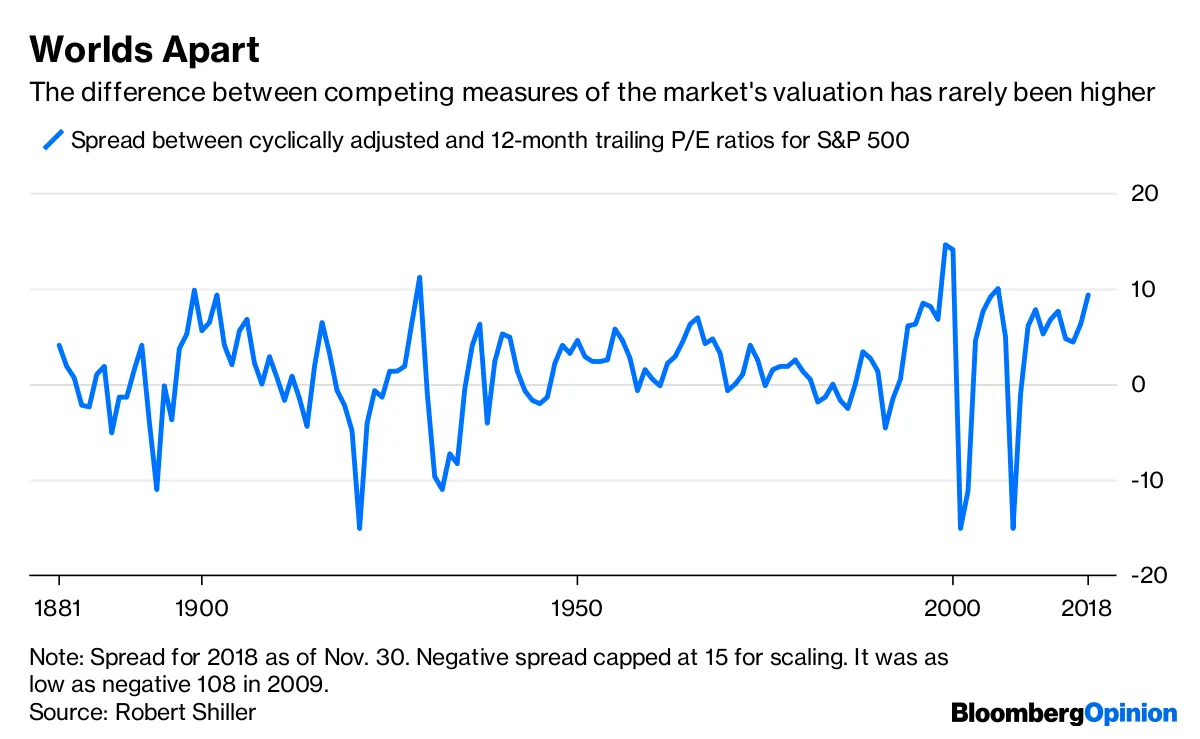 今天股市大幅下跌进入修正区间,原因是,嗯,原因。像往常一样,很难确定。利率已经停止上升,贸易紧张关系似乎在缓和,今天的经济数据也还不错,所以你会认为股票会更高,但实际上并没有。仍然有乐观者,比如查尔斯·利伯曼,他说股票会强劲上涨,因为经济仍然很好,收益也不错,而市场相对于利润历史上是便宜的。啊,但市场可能并不像看起来那么便宜,根据几种不同的指标,尼尔·凯萨尔写道。他还指出,收益通常跟随市场下跌,而不是相反。