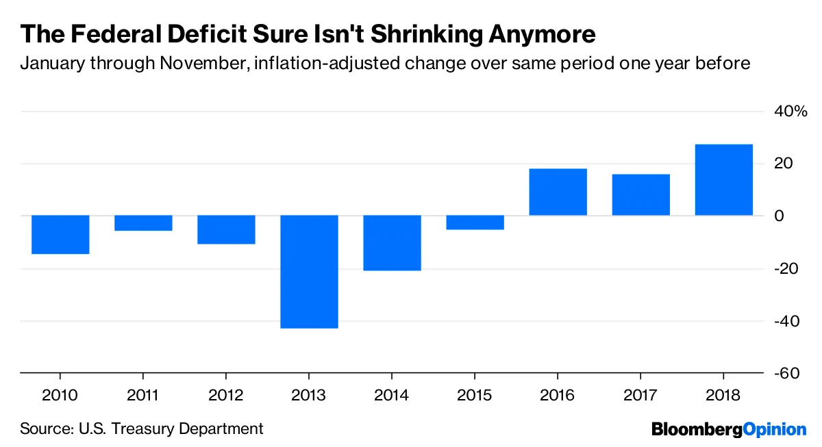 由于支出和减税,联邦赤字正在膨胀,即使经济强劲。这并不正常,注意到贾斯廷·福克斯。这种晚周期的赤字支出可能,如康纳·森所言,给工资带来了提升。但这也引发了关于当经济再次下滑时,政策制定者将拥有多少火力的问题。