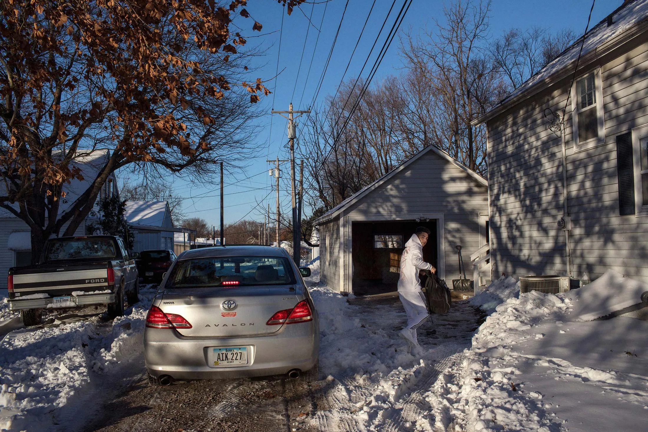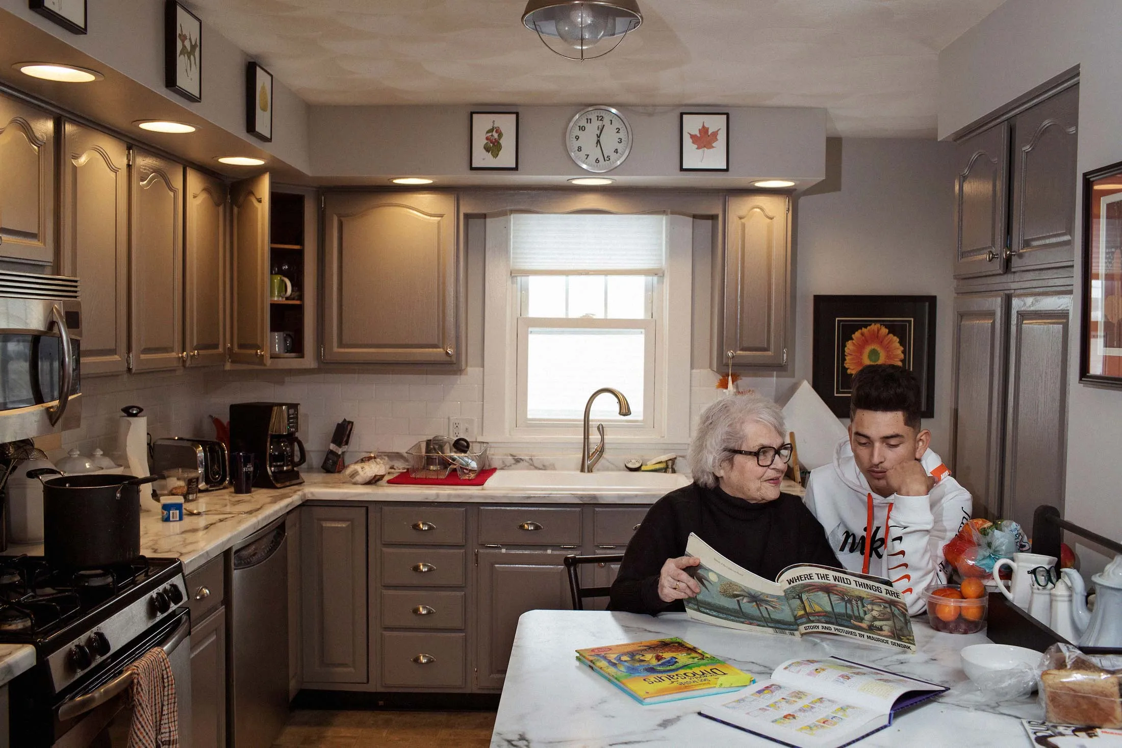 瓦尔弗雷德·乌里萨尔·洛佩斯,埃尔默和塞利亚的长子,和82岁的凯·杨一起住在蒙特普莱森特的家中。瓦尔弗雷德,16岁,作为无陪伴未成年人进入美国,并与父亲在爱荷华州团聚。当他的父亲被驱逐时,杨女士非正式地收养了他。摄影师:丹尼·威尔科克斯·弗雷泽,彭博商业周刊男孩坐在厨房的小桌子旁,把作业说明递给这位82岁的女性。大约九点钟。对他来说还早,但已经过了她的正常就寝时间。就这样吧。她生活中几乎所有正常的东西在她打开生活给他的一刻都飞出了窗外。