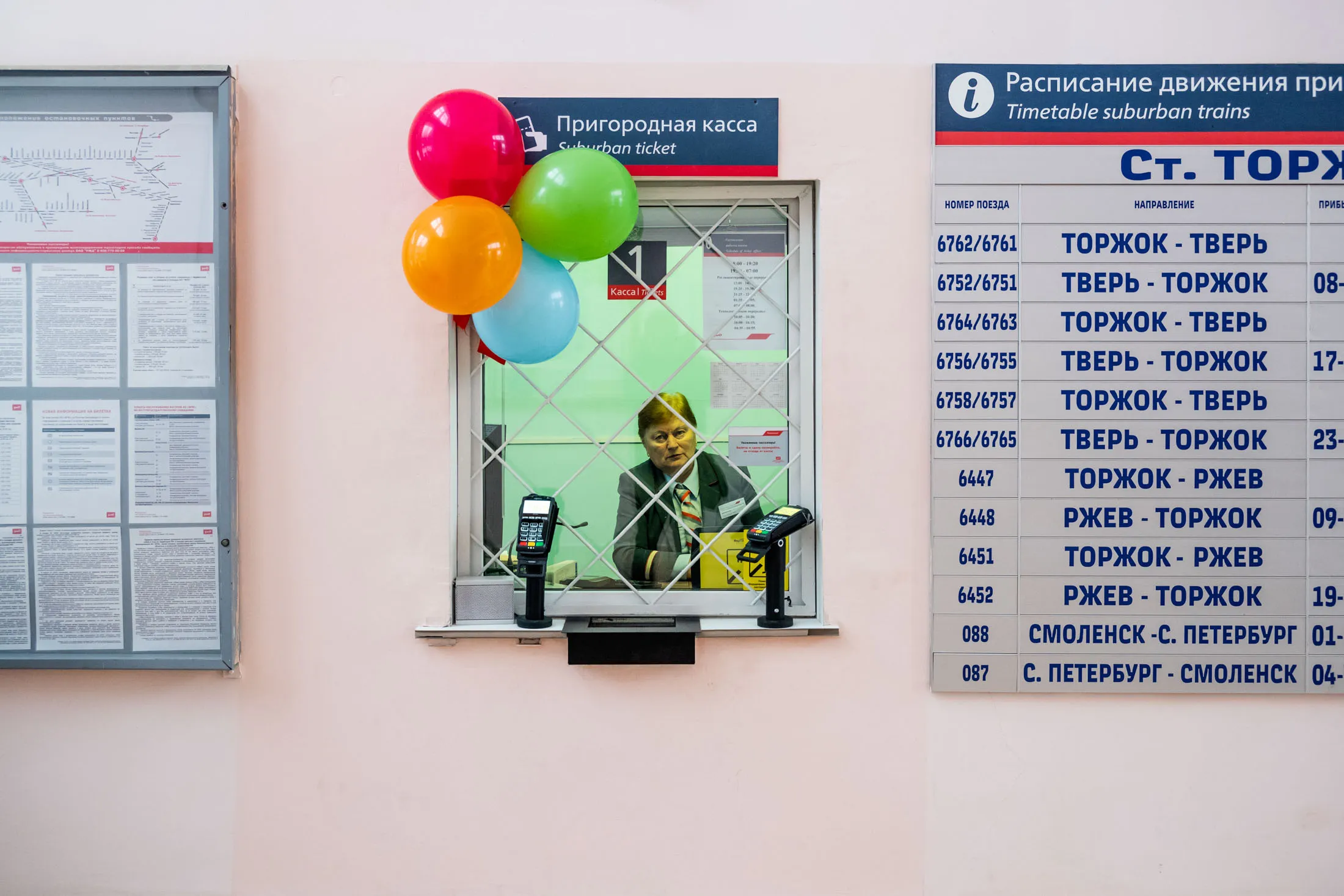 托尔日克火车站的售票处。摄影师:米哈伊·弗里德曼,彭博社在这一努力的众多受益者中,托尔日克是其中之一。这个小镇坐落在特维尔萨河的两岸,河流蜿蜒穿过点缀着破旧大教堂的山丘。作为中世纪诺夫哥罗德共和国的一部分,它有着1000年的历史,常常吸引度假的莫斯科人。
