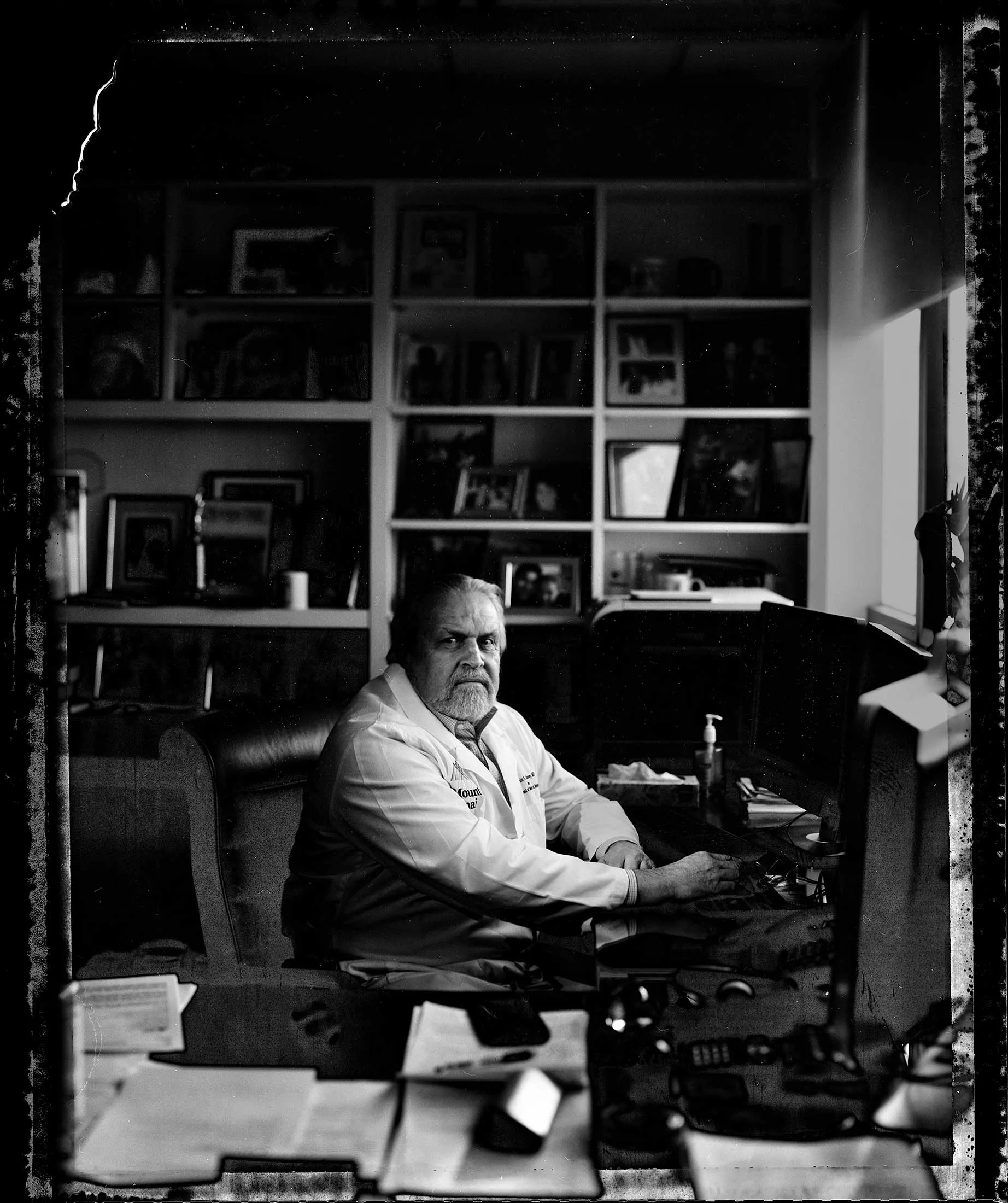 丹尼斯·查尼在西奈山医院。摄影师:马克斯·阿吉莱拉-赫尔维格为《彭博商业周刊》拍摄丹尼斯·查尼,纽约西奈山医院艾坎医学院的院长,工作在一个充满家庭照片、文凭和长期研究生涯奖项的办公室里。墙上的一件东西与其他的不同:一项关于将氯胺酮的鼻用喷雾形式作为自杀患者治疗的专利。这种药物的故事在某种程度上就是查尼职业生涯的故事。