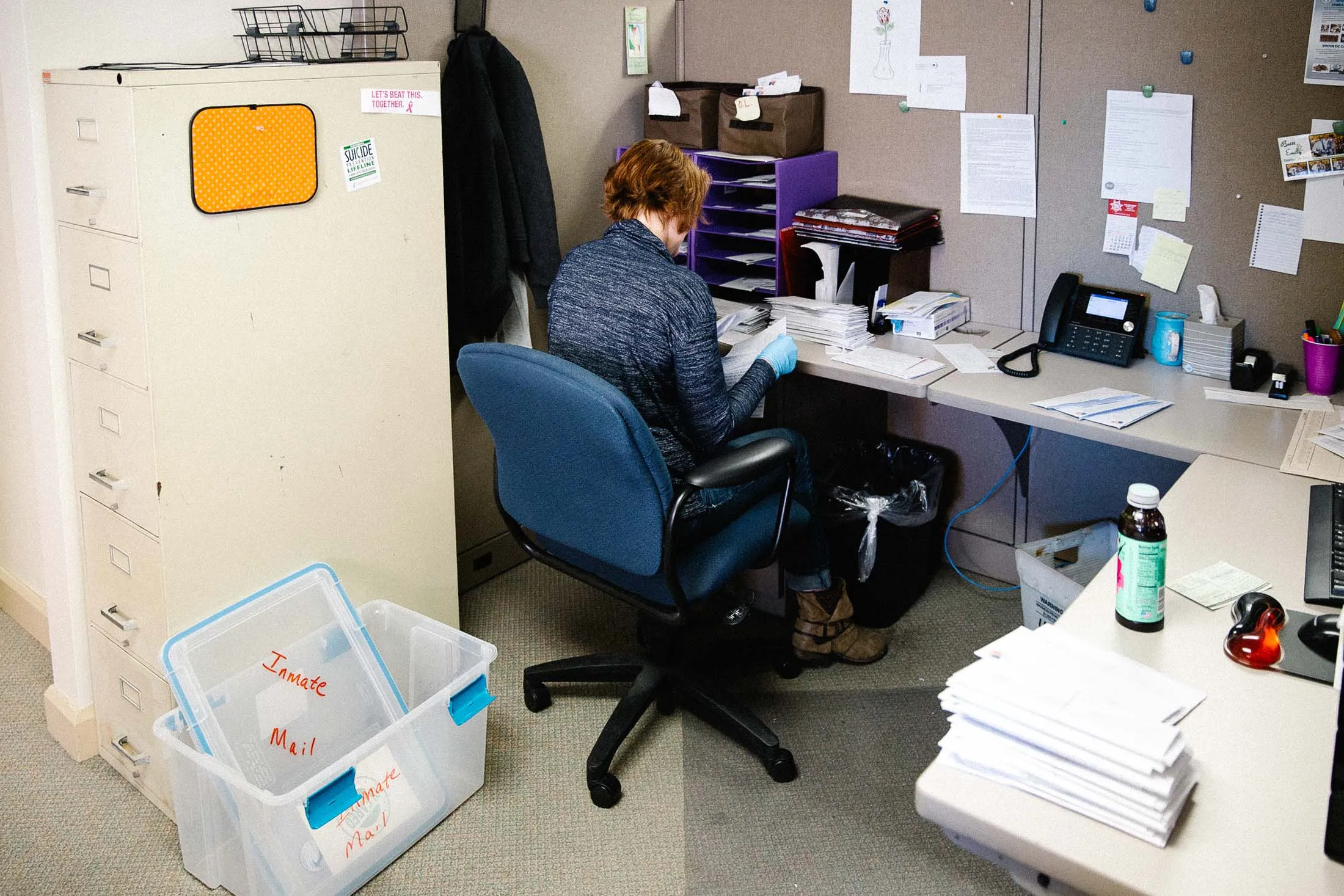 兰开斯特县监狱的邮件文员正在整理囚犯的来信。摄影师:瑞安·科勒德,彭博社在一个理想的世界里,这些应用程序是不必要的,因为监狱内的通信应该是免费的——虽然受到监控和限制,但应该是免费的,司法政策研究所执行董事马克·辛德勒说。“这是一个有很多改进空间的领域,包括剥削性做法,”他说。