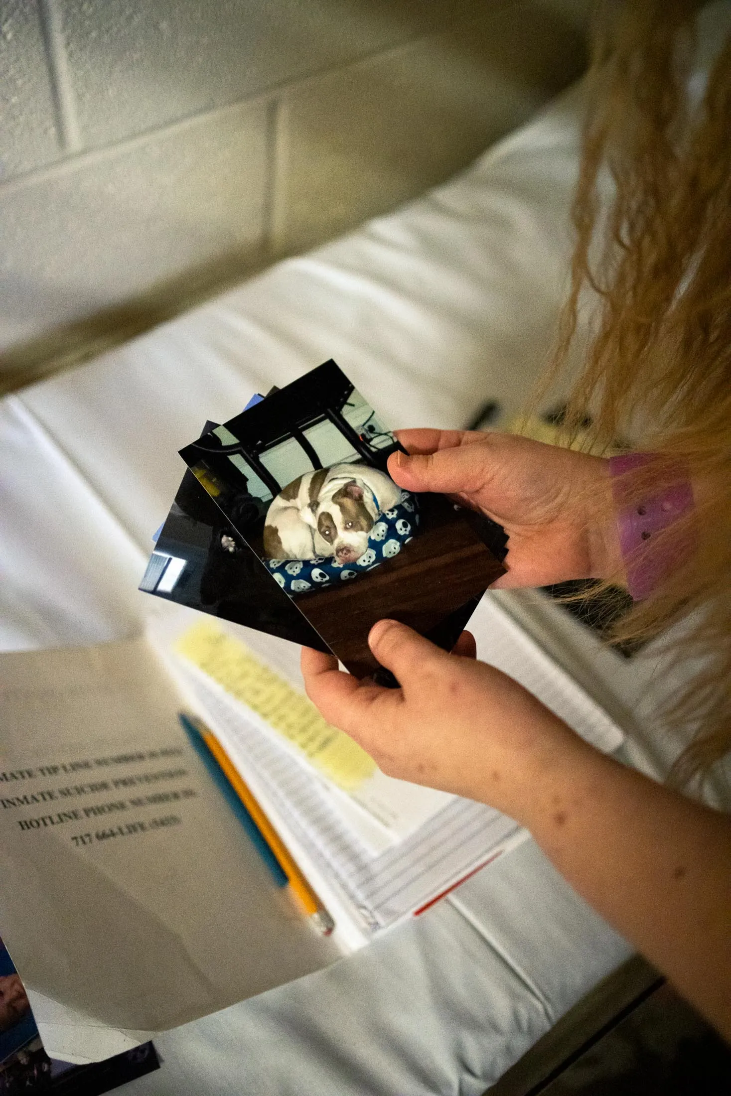 “我宁愿在我的牢房里挂上照片,这样当我早上第一次睁开眼睛时,我能看到我爱的人,并且知道他们也爱我;这让我想起我在这个地方之外仍然有希望,”瓦德林顿说。“在邮件召唤时被叫到名字总是好的。每当他们发放邮件时,我都希望他们能叫出我的名字。我们这些人在这里,需要这个。”