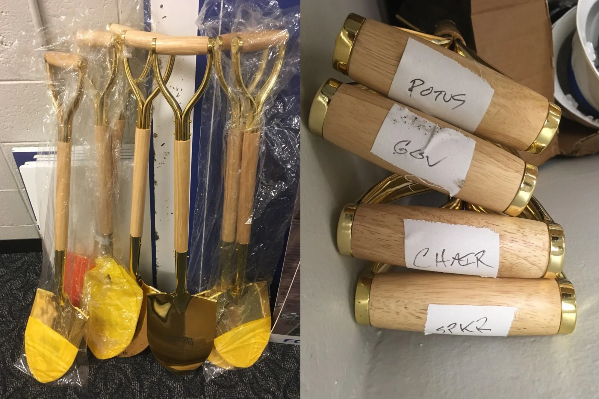 特朗普总统、富士康董事长郭台铭、时任众议院议长保罗·瑞安以及时任威斯康星州州长斯科特·沃克在2018年6月的公司奠基仪式上使用的金铲子。1月18日,富士康宣布到2018年底在威斯康星州有178名全职员工,未能达到首年招聘目标的82%,因此失去了当年的税收抵免。不到两周后,路透社的采访中,吴说富士康正在重新考虑在那儿建造LCD工厂,因为(准备好惊讶)其在美国的成本高于中国和墨西哥。“就电视而言,我们在美国没有立足之地,”吴说。“我们无法竞争。”2月1日,在特朗普致电郭台铭后,富士康再次反转,表示其LCD工厂计划恢复,并计划在接下来的18个月内建设一系列其他生产和研发设施。