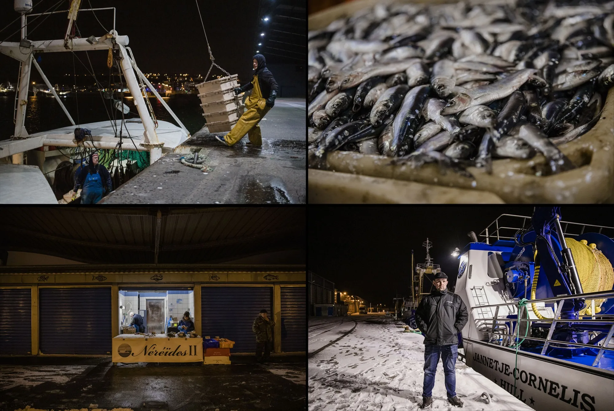 从左上角顺时针方向:渔民卸下他们的捕获物,一箱鲱鱼,彼得·德·博尔在贾内特·科尔内利斯号旁,以及鱼市的摊贩。摄影师:玛琳·阿瓦德/彭博社英国在三月即将脱离欧盟,这威胁到那个多元文化的社区以及大陆的大部分渔业业务。虽然脱欧意味着28个成员国中只少了一个,但英国拥有欧盟最富饶的渔场和仅次于西班牙的第二大渔船队。