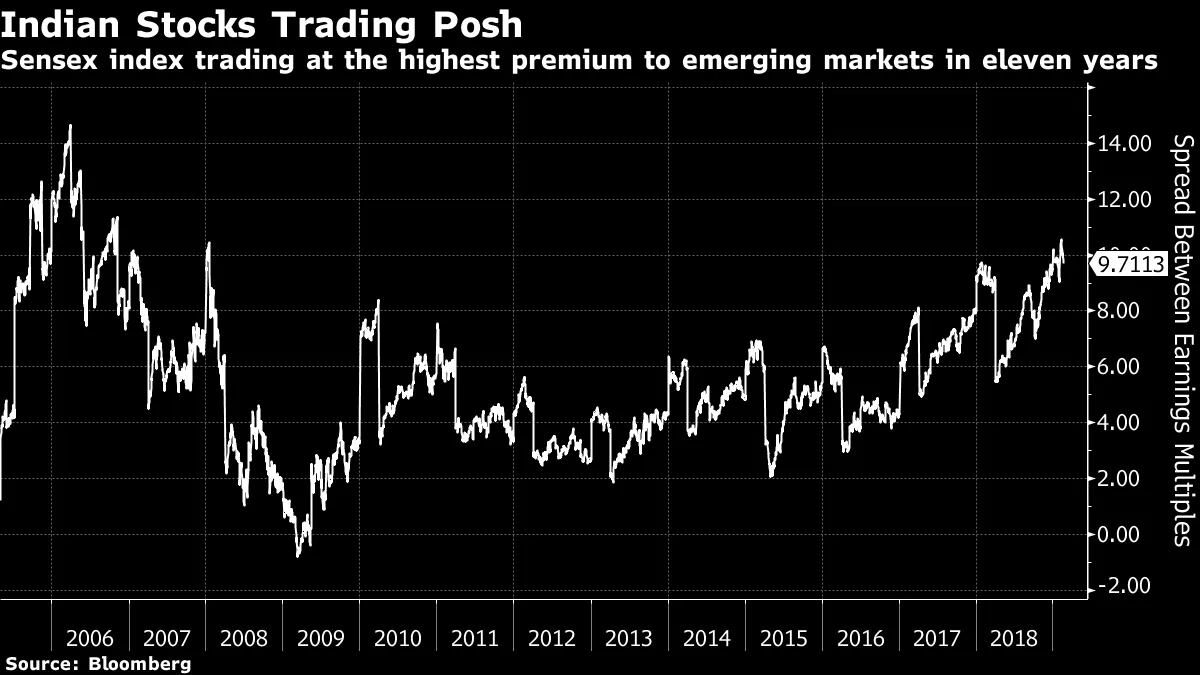 最后,印度看起来很贵。Sensex的交易溢价是十多年来对其他新兴市场的最高水平。近年来,市盈率已经偏高,而本季度的乏善可陈的业绩使其进一步上升。因此,尽管市场表现不佳,但很难说印度现在有很多价值在等待你。