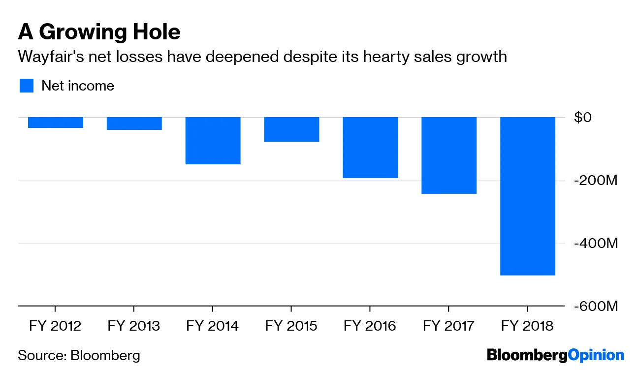 Wayfair Inc.的销售增长让投资者惊叹,但这家家居用品零售商可能是通过巨额支出来维持运转,警告Sarah Halzack。