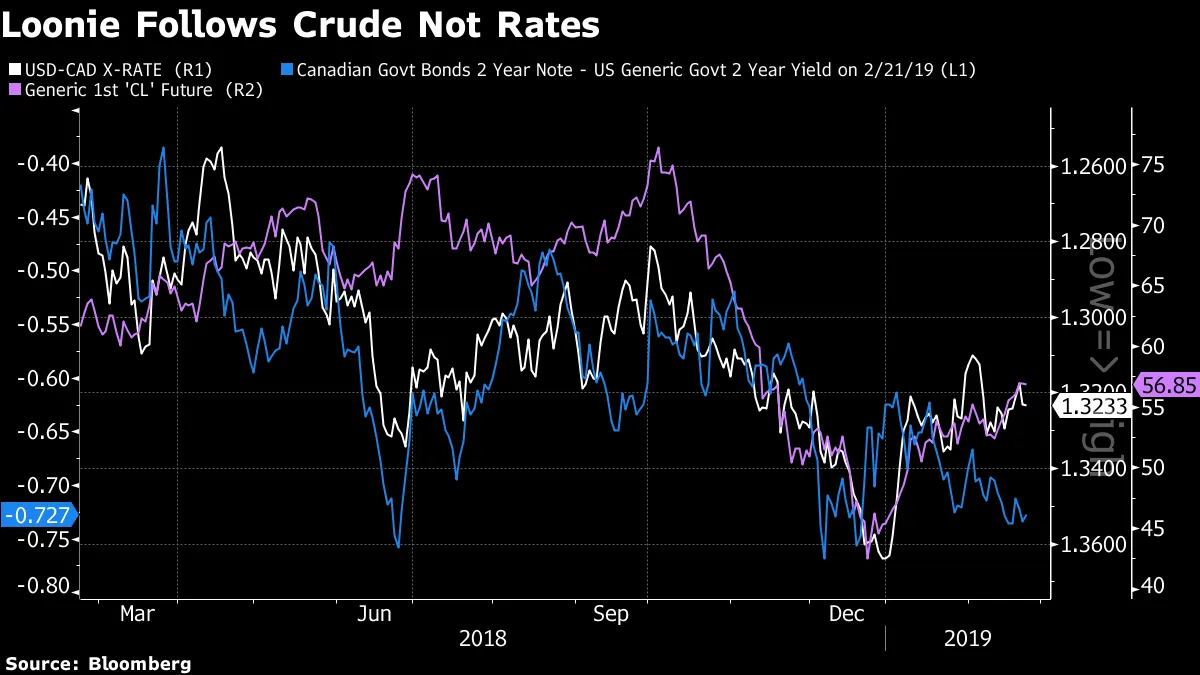 有些奇怪的是,外汇市场似乎并没有从2019年的利率中获得线索。加元相对于美元的走强发生在两年期国债收益率相对于其加拿大同行的溢价上升之中。也许在一个普遍预期中央银行将保持不变的环境中,贸易条件(在这种情况下是油价)在制定外汇波动中扮演了更重要的角色。